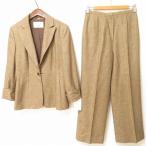 #anc ロシャス レリアン ROCHAS Leilian パンツスーツ セットアップ 9 ベージュ 茶 シルク混 ラメ ドイツ製生地 レディース [945853]