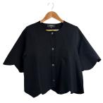 美品 ROCHAS ロシャス 半袖 スカラップ ニットジャケット カーディガン M ブラック レディース 古着 中古