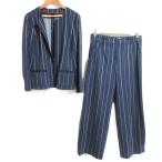 良品 ROCHAS Leilian ロシャス レリアン ストライプ ノーカラージャケット ワイドパンツ セットアップ 9号 ネイビー レディース 古着 中古