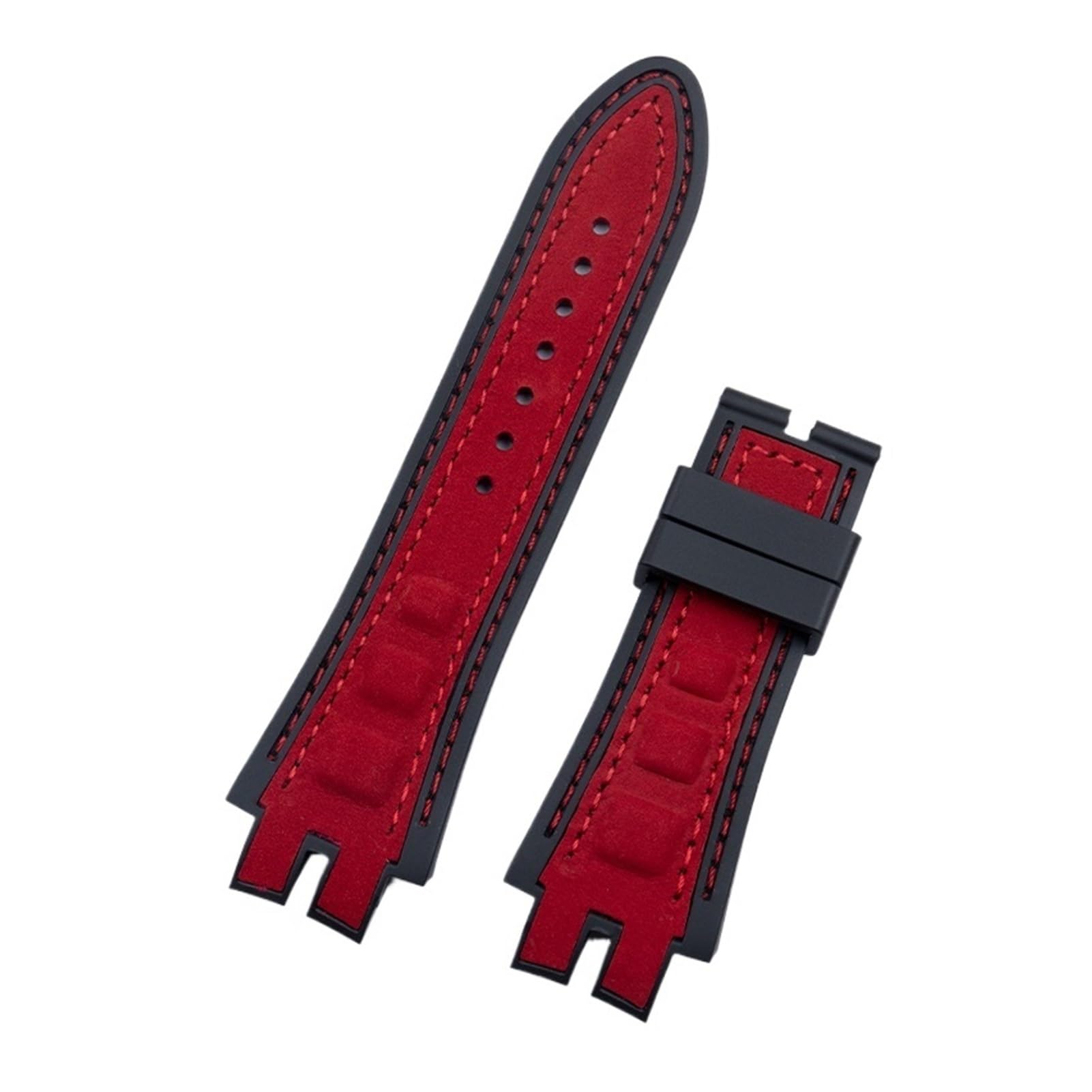 [YEAHSO] 28 ミリメートル黒青赤黄ヌバック革ベルトシリコーン時計バンドアクセサリーロジェデュブイストラップと互換性エクスカリバーシリーズと互換性 (Color : Red, Size : 28MM_10)