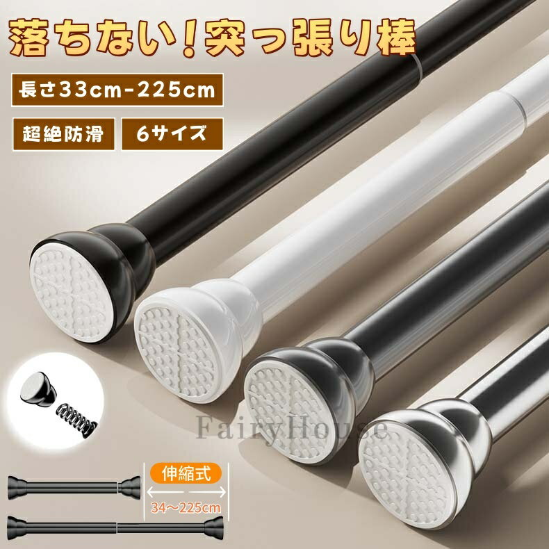 【6%OFFクーポン】ステンレス 強力突っ張り棒 33cm~225cm 選べる6サイズ つっ張り棒 耐荷重 突っぱり棒 防震 強力 カーテン 衣類収納 ベランダ トイレ お風呂 浴室 クローゼット収納 ハンガー 伸縮 洗濯物 強い負荷 カーテンロッド 屋外 滑り止め 新生活