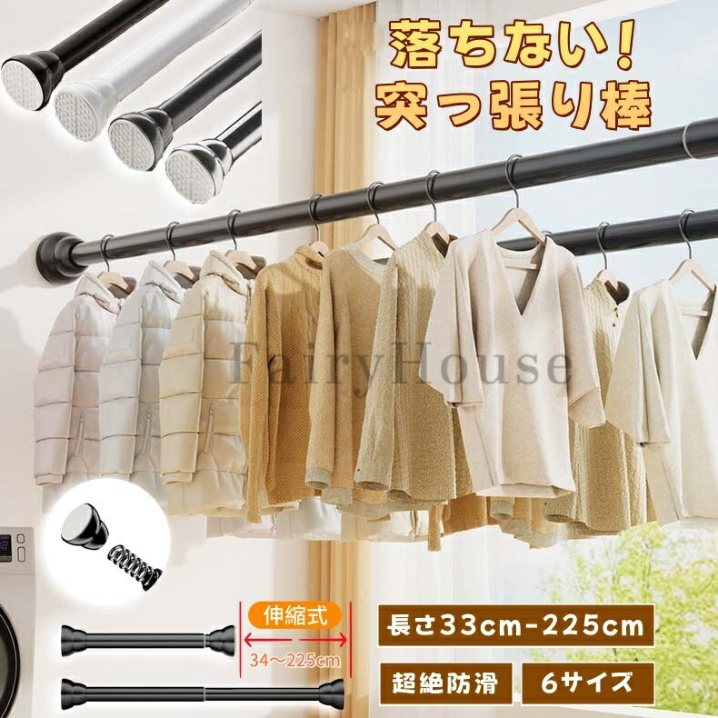 【6%OFFクーポン】突っ張り棒 強力 つっぱり棒つっぱり式 ハンガーラック 伸縮棒 超強力 突っ張り式 耐荷重 カーテン 長さ調整 省スペース ステンレス 新生活応援 春 夏 秋 冬 カーテンロッド 物干し 間仕切り ブラック/ホワイト/シルバー/グレー