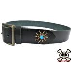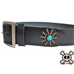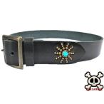 栃木レザー エンドオンリースタッズベルト 黒 ターコイズスポッツ ヴィンテージタイプ 日本製