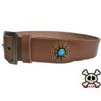 栃木レザー エンドオンリー スタッズベルト 茶 ターコイズスポッツ ヴィンテージタイプ 日本製
