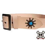 栃木レザー フラワー型 スタッズベルト 白 クリスタルスポッツ 日本製 一枚革ベルト