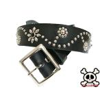 栃木レザー フラワー型 スタッズベルト 黒 ブラックスポッツ 日本製 ハンドメイド