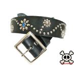 栃木レザー フラワー型 スタッズベルト 黒 クリスタルスポッツ 日本製 一枚革ベルト