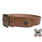 真鍮製バックル 栃木レザー ピーナッツ型 真鍮スタッズベルト チョコ 一枚革