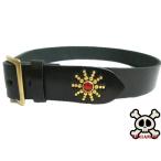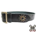 真鍮製バックル 栃木レザー フラワー型スタッズベルト 黒 グリーンスポッツ 日本製 一枚革ベルト