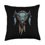 カウボーイ ロデオ 牛のスカル×ドリームキャッチャー デザイン 装飾クッション