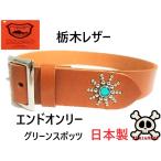 栃木レザー エンドオンリー スタッズベルト 茶 グリーンスポッツ 日本製