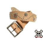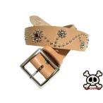 栃木レザー フラワー型 スタッズベルト ナチュラル レッドスポッツ 日本製 一枚革ベルト