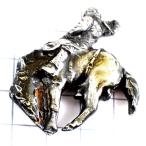 ピンバッジ・ロデオ乗馬カウボーイ/USAアメリカ銀色ピューター製◆フランス限定ピンズ◆レアなヴィンテージものピンバッチ