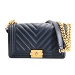 シャネル ボーイシャネルチェーンショルダー ショルダーバッグ A67086 ネイビー レディース 中古AB品