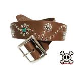 栃木レザー フラワー型 スタッズベルト チョコ グリーンスポッツ 日本製 一枚革ベルト