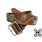 栃木レザー フラワー型 スタッズベルト チョコ クリスタルスポッツ 日本製 一枚革ベルト