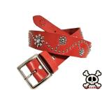 栃木レザー フラワー型 スタッズベルト 赤 クリスタルスポッツ 日本製 一枚革ベルト
