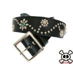 栃木レザー フラワー型 スタッズベルト 黒 グリーンスポッツ 日本製 ハンドメイド
