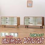 キャビネット 木製 奥行き25cm ガラス扉 北欧 ロータイプ コレクションシェルフ 2カラー