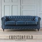 チェスターフィールド ソファ 鋲打ち 英国風 ヴィンセント 3人掛け ブルー PUレザー(合皮) vc3p58k リプロ E 179*78*69