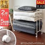 1年保証 布団収納ラック 2段 ハイタイプ 高さ5段調整 キャスター付き 布団ラック 収納ワゴン 幅110cm×奥行40cm×高さ100cm ふとん収納 収納ラック 送料無料