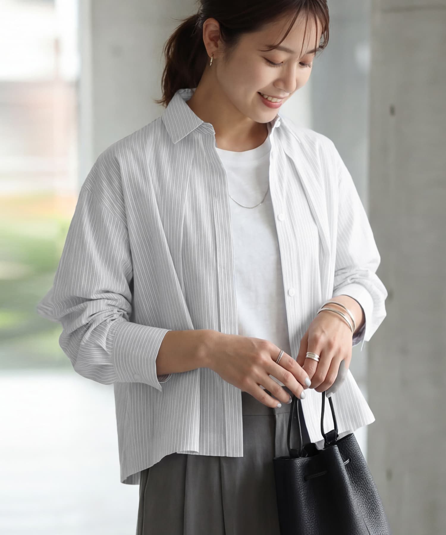 STYLE DELI(スタイルデリ)/【selection】ストライプ柄立体タックショートシャツ