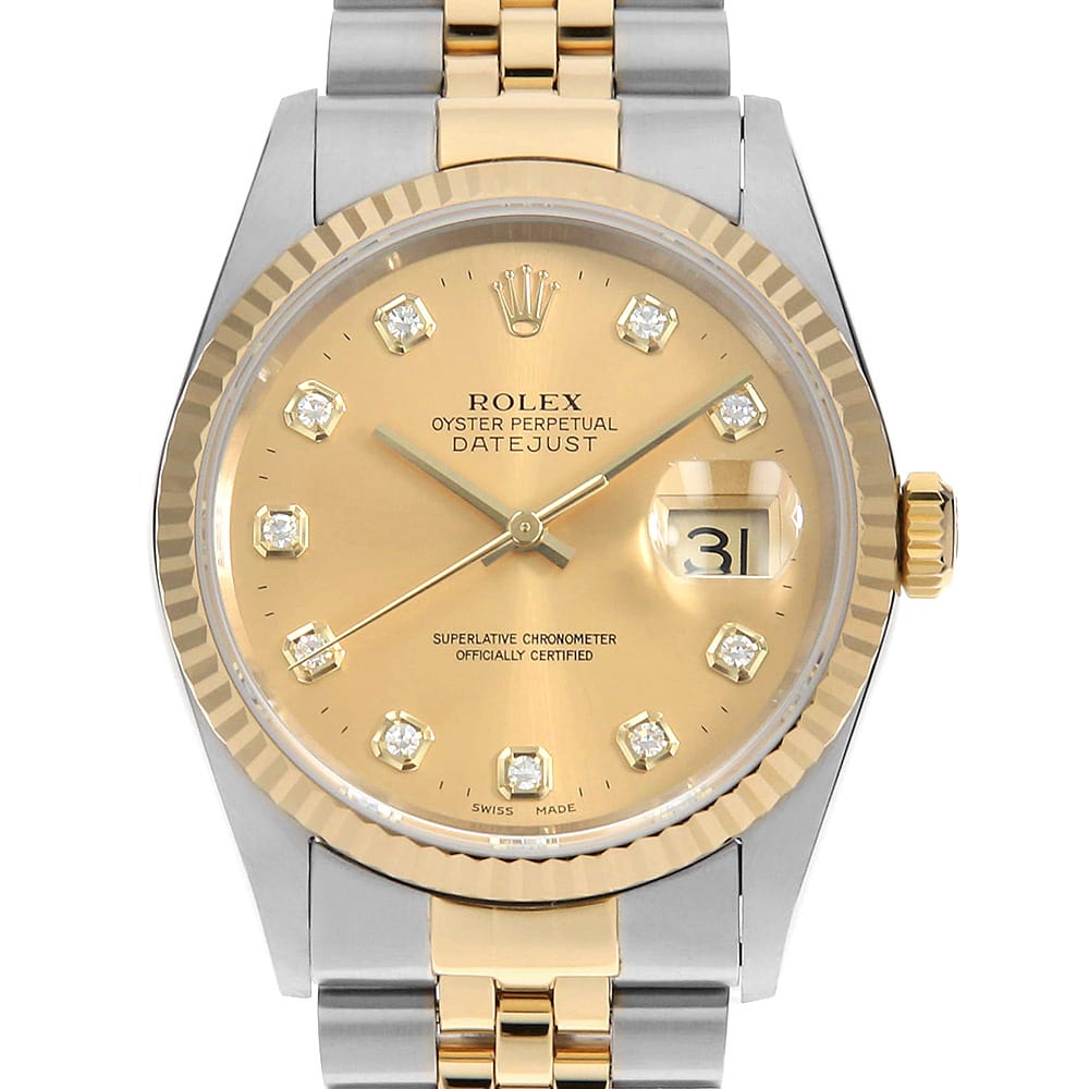 【ローン60回払い特別低金利】ロレックス デイトジャスト 10Pダイヤ 16233G シャンパン P番 メンズ【中古】【腕時計】【送料無料】【返品OK】