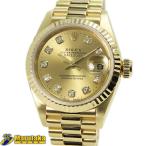 【ロレックス】デイトジャスト 69178G K18YG 金無垢 W番台 OH済 ギャランティ付 レディース シャンパン 10Pダイヤ トリチウム ROLEX 中古