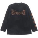 美品▼BALENCIAGA バレンシアガ 23SS 739783 コットン100% ヘビーメタルロゴ ダメージ デストロイ ロングスリーブ 長袖Tシャツ 1 正規品