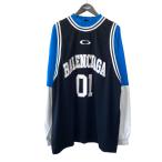 バレンシアガ BALENCIAGA Basketball Series レイヤード ロングスリーブTシャツ 822176 ブラック×ブルー サイズ: