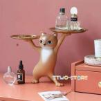 皿を捧げるネコ ねこ 猫ちゃん キー収納 金属 トレイ 鍵置き 小物収納 玄関収納 卓上置物 収納トレイ 動物像 彫刻装飾 玄関 ペットサイトテープル 化粧卓