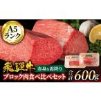 ふるさと納税 牛肉 ステーキ 岐阜県 土岐市 飛騨牛 ブロック肉 食べ比べセット(赤身&霜降り)計600g 有限会社マルゴー クリスマス ローストビーフ 5等級 A5…