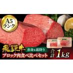 ふるさと納税 牛肉 ステーキ 岐阜県 土岐市 飛騨牛 ブロック肉 食べ比べセット(赤身&霜降り)計1kg 有限会社マルゴー クリスマス ローストビーフ 5等級 A5ラ…