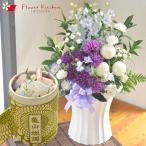 ローソクと花のセットムーンダストお供えアレンジLサイズとカメヤマローソク「和遊」10分蝋燭セット FKAASE
