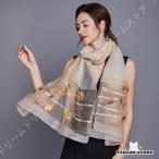 花柄ストール スカーフ 刺繍 uv レディース 大判 オーガンザ シフォン おしゃれ マフラー 春 春夏 秋 uvカット ストール 両用 大判 柔らか 薄手 夏 母の日