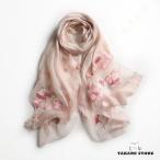 シルク ストール 大判 花柄 刺繍 UV UVカット フラワー 春 春物 春夏 夏 ロングストール 夏用ストール 薄手 大判ストール 紫外線防止 スカーフ レディース