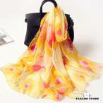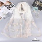 春 レディース シルクシフォンスカーフ エレガントな無地の色スカーフ シルクとチュールのデザイン 優しい肌触り 大判ストール 薄手 花柄 フラワー UVカット