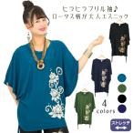 送料無料 エスニック Tシャツ トップス カットソー ロータス 五分袖 七分袖 蓮 ハス 花 フラワー スパンデックス ファッション アジアン レディース ゆったり 大きいサイズ 大きめ【メール便可 1.5cm】【3】
