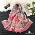 春 レディース シルクシフォンスカーフ エレガントな無地の色スカーフ シルクとチュールのデザイン 優しい肌触り 大判ストール 薄手 花柄 フラワー UVカット