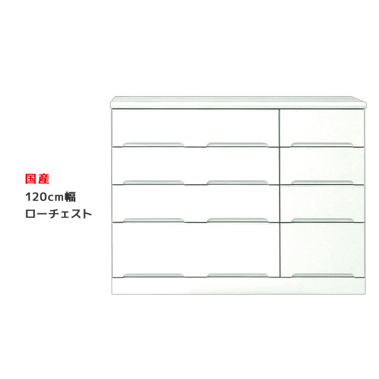 (タイムセール中) 開梱設置 ローチェスト 衣類収納 幅120cm 4段 ホワイト スライドレール付き引き出し 日本製 完成品