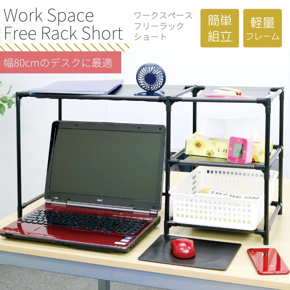 デスク 収納 ワークスペース フリーラック ショート 上 収納ラック ( ラック PCラック 卓上 パソコン 棚 幅75.5 在宅ワーク リモート 組立 シンプル )