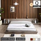Platform Bed ローベッド クイーン ナイトテーブルLR(左右) 20cm厚 ポケットコイルマットレス付 棚付きコンセント2口 木製ベッド フロアベッド
