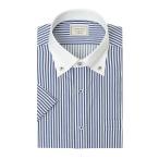 ロードソン 半袖 形態安定 ワイシャツ 綿100% メンズ ボタンダウン Yシャツ ブルー ストライプ スリムフィット LORDSON(con090-450)