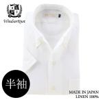 ワイシャツ ウィンザーノット 半袖 リネン ボタンダウン ワンピースカラー シャツ ホワイト 白 無地 日本製 麻100% イタリアンカラー |クリスマス プレゼント