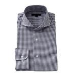 フォーマル シャツ 「ノンアイロン」長袖ワイシャツ 綿100% 市松柄 「クラシコ」サックス メンズ