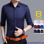 ワイシャツ 白シャツ メンズ 無地 長袖 ストレッチ カラフル ビジネス対応 形態安定加工 スリム