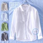 シャツ メンズ リネンシャツ 綿麻 白シャツ ワイシャツ カジュアルシャツ トップス 長袖 ナチュラル 夏