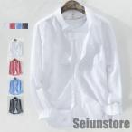 リネンシャツ メンズ 白シャツ 夏 ファッション 綿麻シャツ カジュアルシャツ 開襟シャツ 長袖 無地 ワイシャツ 2023