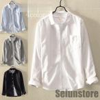 カジュアルシャツ メンズ 春夏 ワイシャツ 綿シャツ 長袖 無地 シンプル 薄手 開襟シャツ スリム 通学 通勤 体型カバー 大きいサイズ ファッション おしゃれ
