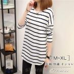 Tシャツ 長袖 レディース ミドル丈 ストライプ柄 春 夏 秋 ルームウェア スリム おしゃれ 通勤 通学 柔らかい 可愛い シンプル プレゼント